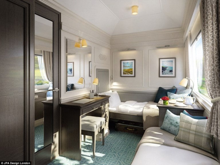 ويمكن للمسافرين البقاء في كابينة مستوحاة من أيرلندا، والتمتع بوجبات الإفطار والغداء والعشاء التي تستخدم المكونات من المناطق التي يقصدها المسافر والتمتع بالترفيه الحي والمناظر الخلابة من البلاد في صالة المشاهدة.