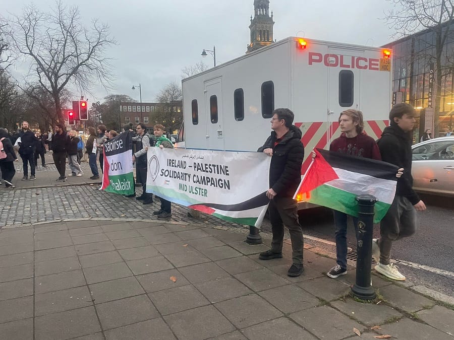 اعتقال أربعة أشخاص في بلفاست خلال احتجاجات مؤيدة لفلسطين أثناء زيارة هيلاري كلينتون لجامعة كوينز