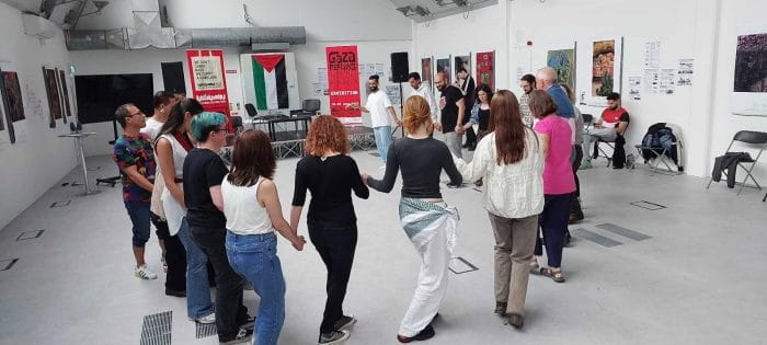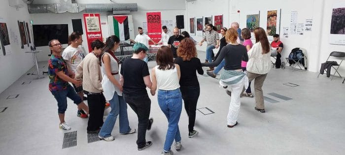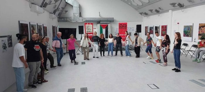 ضمن فعاليات أيام فلسطين الثقافية المقامة حاليًا في العاصمة دبلن، نظم المركز الرقمي (The Digital Hub) يوم الخميس 26 / 6 / 2025 ورشة تدريبية بعنوان «الدبكة: عنوان المقاومة والصمود»، أدارها الفنان وراقص الدبكة عبود الشوبكي من فرقة أوسكار.