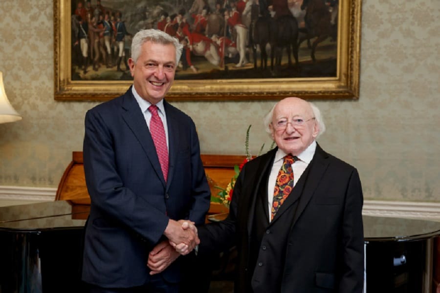 وجاء ذلك خلال استقباله المفوض السامي للأمم المتحدة لشؤون اللاجئين فيليبو غراندي في زيارة إلى مقر الرئاسة في دبلن.