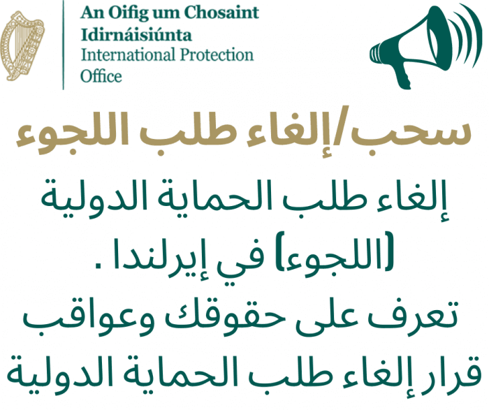 يمكنك سحب طلبك للحصول على الحماية الدولية قبل أن يقدم مكتب الحماية الدولية (IPO) توصيته للوزير، أو أثناء انتظار الاستئناف على القرار.