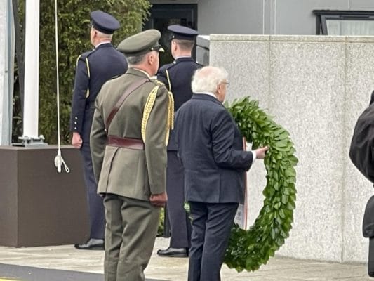 وضع الرئيس مايكل دي هيغينز اليوم إكليل من الزهور نيابة عن شعب أيرلندا، تخليدًا لذكرى جميع أعضاء الشرطة والموظفين الذين فقدوا أرواحهم أثناء الخدمة على مدار 101 عام الماضية.