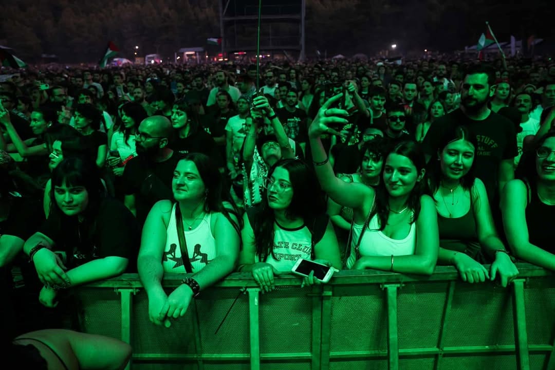 فرقة نيكاب، التي تُعرف بمواقفها السياسية الجريئة، جمعت بين الفن والمقاومة في عرض كان أكثر من مجرد حفلة موسيقية، بل تحول إلى منصة عالمية لرفع الصوت الفلسطيني، من خلال كلمات مباشرة وجمهور متفاعل ورايات تؤكد أن فلسطين حاضرة في وجدان الشعوب الحرة.