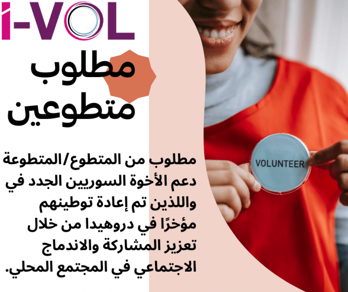 يهدف دور المتطوع إلى دعم جيراننا السوريين الجدد في إعادة توطينهم مؤخرًا في دروهيدا من خلال تعزيز المشاركة والاندماج الاجتماعي في المجتمع المحلي، من خلال الصداقة، ستقوم بتمكين هذه العائلات من خلال مد يد العون لهم وليس المساعدة.