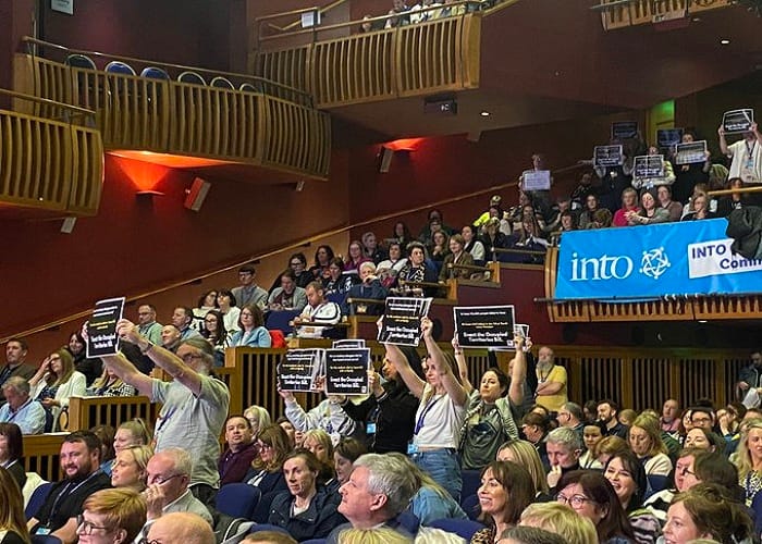ونقابة المعلمين الوطنية الأيرلندية، التي تعتبر نقابة شاملة للجزيرة، تجتمع في ديري لأول مرة منذ 90 عامًا.