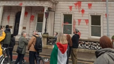 وزارة الخارجية تتعرض للتخريب بالطلاء الأحمر للمرة الثالثة منذ بدء حرب غزة