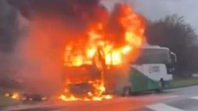حريق حافلة يتسبب في فوضى مرورية قرب مطار دبلن وتحذيرات للمسافرين